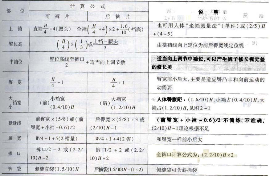 男西褲樣板配屬規(guī)格尺寸及設(shè)計(jì)公式參考表