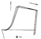 后翹是后襠坡的延伸,它的主要作用就是滿足人體的活動需求,人體在日常的工作和生活中,所表現的彎腰、蹲、跨、跳、走、坐等動作(見圖示12),無不影響著后襠上部自然的伸長,因此后翹就成了西褲后襠必不可少的組成部分。所謂后襠起坡度,是指后襠的直線與褲中線的垂線而言,從定理上看后襠的坡度,是以臀圍與褲腰圍的互差值來決定,在臀圍同樣大大小的條件下,腰圍越大,后襠坡度越小:褲腰圍越小,后襠度越大(見圖示13),從而產生后翹的變化規律,后翹的高低以后襠坡度來決定。)