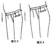 認知圍襠的組合,還要進一步把握人體與西褲結構的吻合。圍襠尺寸雖與臀圍尺寸關系密切,但它們各自代表著一個傾向尺寸(見圖示7)。臀圍是橫向的圍度,圍襠是