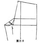 后翹高低的選擇,也要根據體型和習慣的需求來處理,也有的時候會產生這樣的矛盾,腰部與臀部尺寸接近,甚至于相等,后襠坡度與后翹高度,都受到限制,這就需要改變褲于前、后身的分配,加大前身的面積比例,因為凡是肥、胖、壯的人,腹部比較豐滿,確保正常后襠坡度,使之腰、臀平衡。總之,任何形狀的后翹角度,都要掌握住大于90度直角,最佳狀態以92度- 94度為宜(見圖示15),這樣才能確保后襠與腰部的平展。