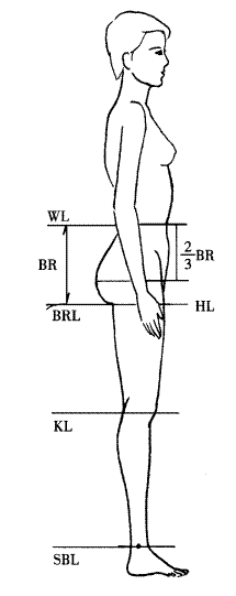 前、 后臀寬: FH=H/4-1,BH=H/4+1